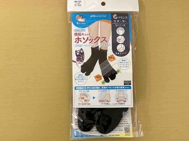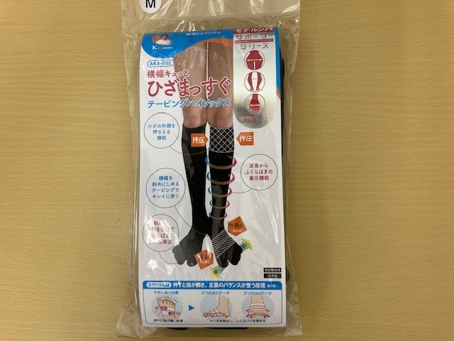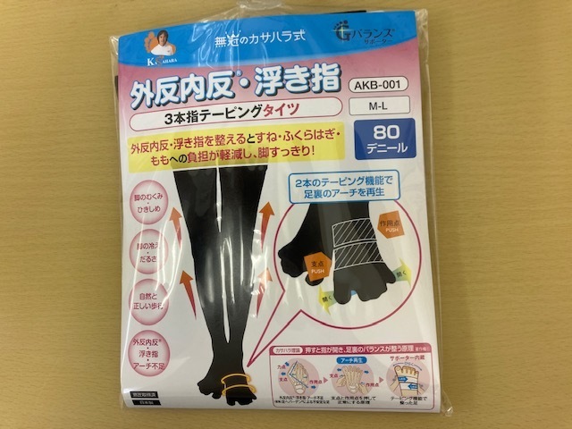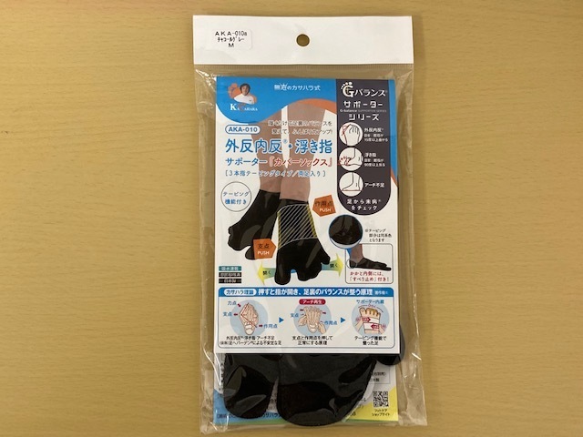 当院では、カサハラ式専用のソックス・サポーター・テーピングなど、足のバランスを正常に整えるためのサポートグッズを取り扱っています。