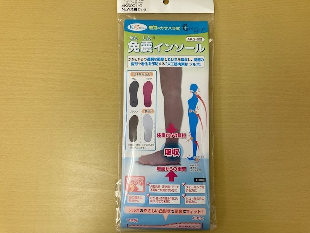 特徴➤立って歩く時の踵からの過剰な衝撃を分散吸収してくれるので、首・肩・腰・ひざ・足にかかる負担が軽くなります。