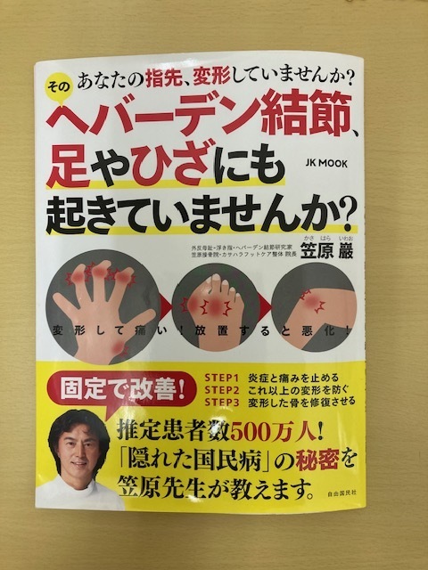書籍『あなたの指先変形していませんか?へバーデン結節、足やひざにも起きていませんか?』(笠原巖先生著)は、指先の変形「へバーデン結節」を通して、体のゆがみや重心バランスの乱れが全身に与える影響をわかりやすく解説した一冊です。へバーデン結節は手指だけでなく、足・ひざ・腰・首などにも起こる「全身の変形性関節症(炎)」の一部であると笠原先生は指摘。実際の症例をもとに原因を探り、日常生活での正しい姿勢や歩行、テーピングやインソールなどの対応方法を紹介しています。痛みを根本から改善し、再発を防ぐための実践的な内容が詰まった一冊です。